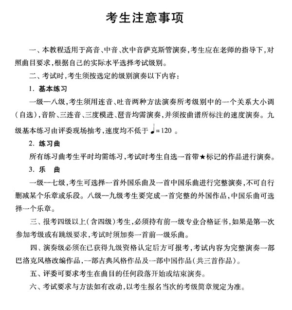 近年來(lái),中國(guó)薩克斯管演奏水平不斷提高,世界薩克斯管藝術(shù)也在迅速發(fā)展。為了適應(yīng)這一形式,本著業(yè)余考級(jí)的趣味性、實(shí)用性,以及教學(xué)手法的專(zhuān)業(yè)性及前瞻性等原則,編者對(duì)原有教程進(jìn)行了重新修編。