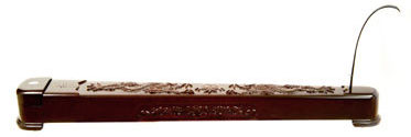 木制獨(dú)弦琴,琴身由面板、底板和框板膠合而成。外觀呈不規(guī)則的長方形匣狀,琴面寬的一端為琴首,琴面窄的一端為琴尾。共鳴箱全長105厘米,琴首寬12厘米、高8厘米,琴尾寬8厘米、高6.5厘米,面板使用桐木制作,板厚0.3厘米左右,底板使用松木制作,板厚0.6厘米左右,框板采用紅木或花梨木等硬質(zhì)木料制作,板厚1厘米左右。
