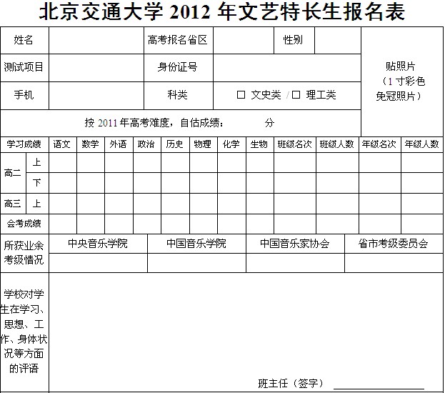 附件:北京交通大學(xué)藝術(shù)特長生報名表電子版下載