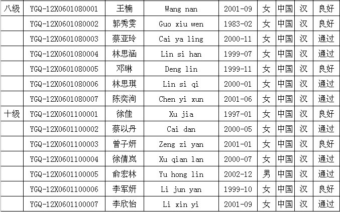 注:以上公布的是考級成績已通過的學生,如沒有查找到成績的學生請撥打:0591-87623771 查詢。