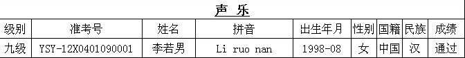 注:以上公布的是考級(jí)成績已通過的學(xué)生,如沒有查找到成績的學(xué)生請(qǐng)撥打:0591-87623771 查詢。