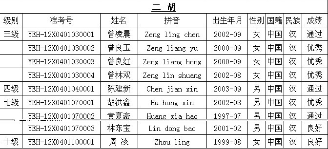 注:以上公布的是考級(jí)成績(jī)已通過(guò)的學(xué)生,如沒(méi)有查找到成績(jī)的學(xué)生請(qǐng)撥打:0591-87623771 查詢。