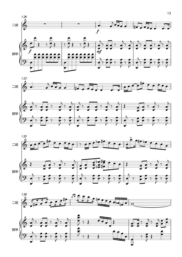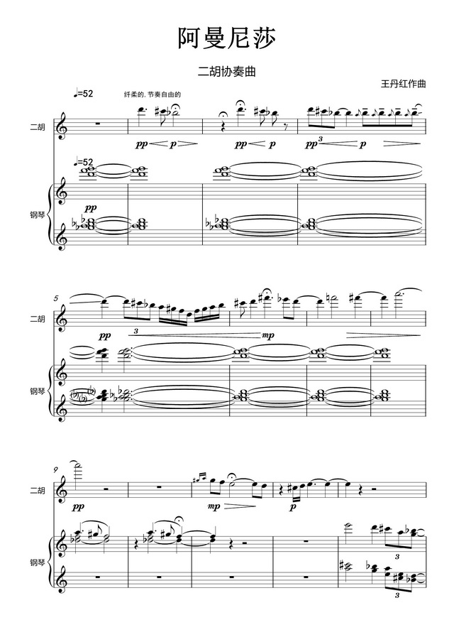 第十屆中國音樂“金鐘獎”二胡比賽 (決賽) 規(guī)定曲目之協(xié)奏曲:阿曼尼莎鋼琴伴奏譜