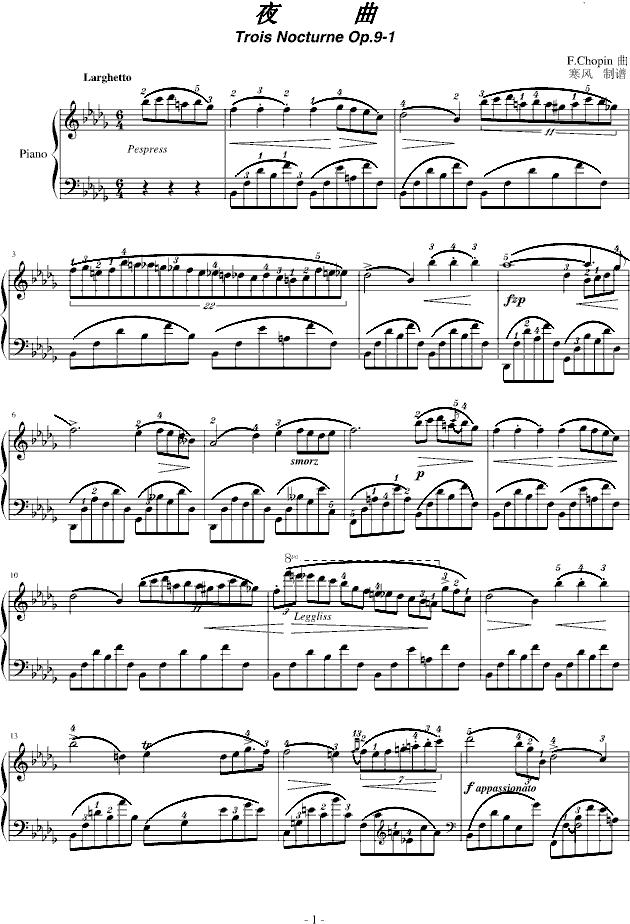 鋼琴曲譜:《夜曲》(降b小調(diào) Op.9-1)